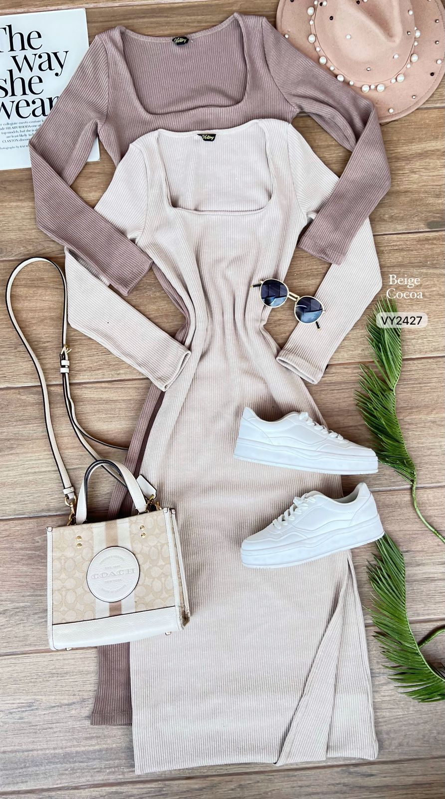 Elegante vestido de manga larga confeccionado en hilo de alta calidad. Esta prenda combina sofisticación y comodidad, perfecta para cualquier ocasión especial o casual. El tejido en hilo ofrece suavidad, transpirabilidad y un ajuste favorecedor.